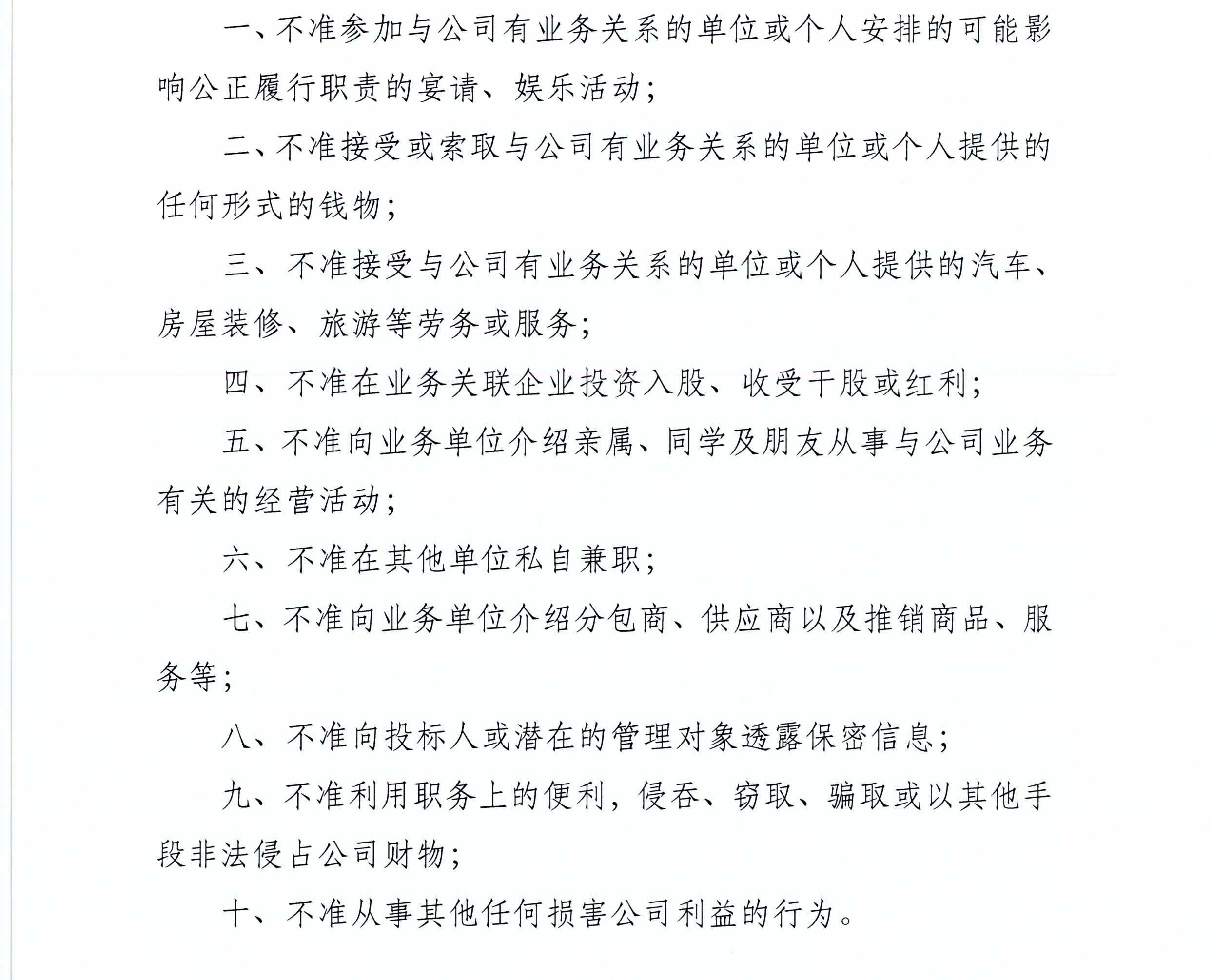 安徽省引江濟淮集團有限公司員工廉潔從業“十不準”