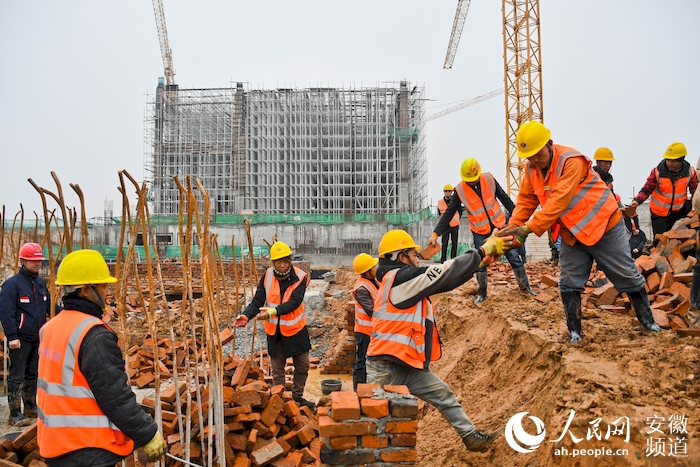 1月27日,再過四天就是除夕夜,有的人已經踏上返鄉的路,而在合肥市肥西縣的蜀山泵站樞紐,這里還是一片繁忙的施工景象,70多名參建人員將在工地上度過春節。