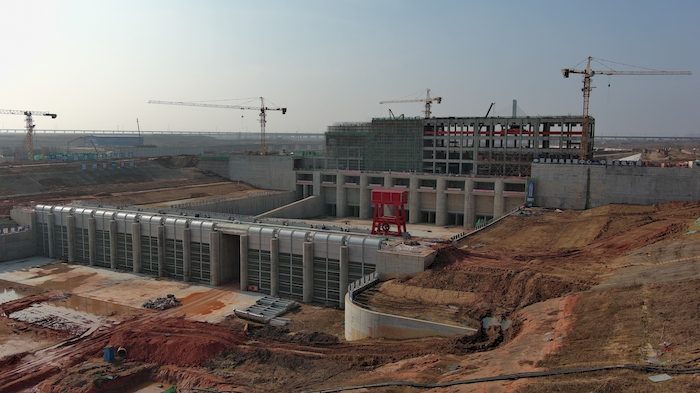 參建人員在蜀山泵站樞紐工作。人民網 周坤攝